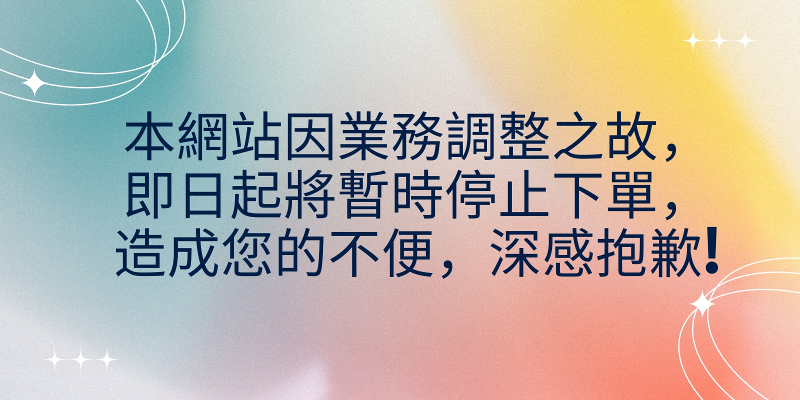 本網站業務調整之故,即日起將暫停下單,造成不便敬請見諒,感謝您長期的支持與愛護!