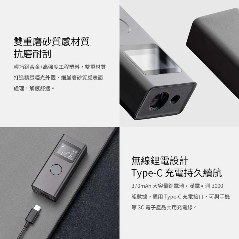包裝清單:激光測距儀x1、充電線x1、使用說明書x1