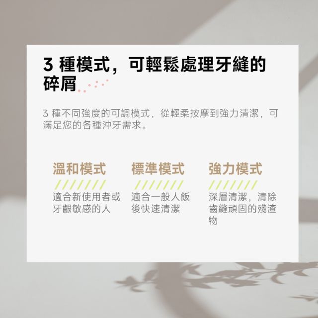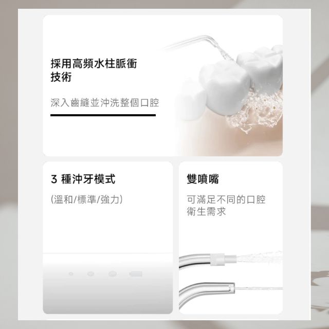 3種可調模式、2種專業噴嘴,滿足不同沖牙需求
