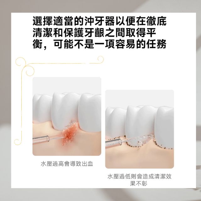 使用沖牙器較不會有食物殘渣,牙齦乾淨,減少牙周病問題