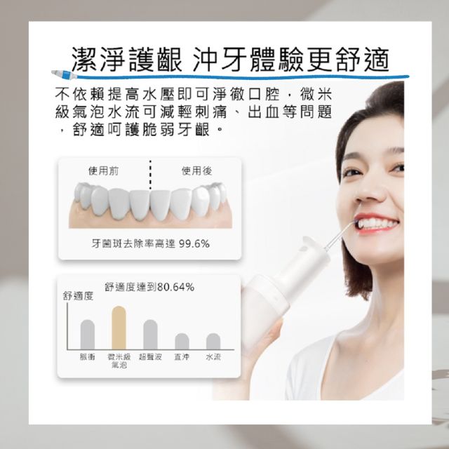 1.呵護口腔,從細微之處開始! 小米電動沖牙器2,用微米級氣泡脈衝,帶來潔淨新體驗。